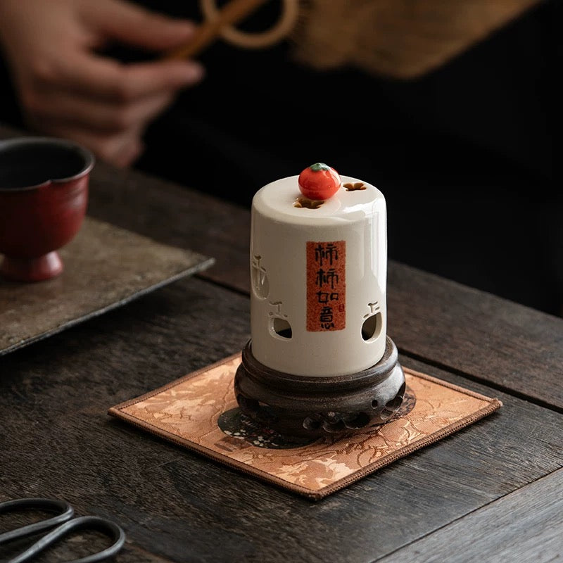 Gambiered Canton Silk Tea Tray Mat - Chinese Brocade Gourd Coaster Set (Heatproof Fabric Pad for Teapots & Cups)