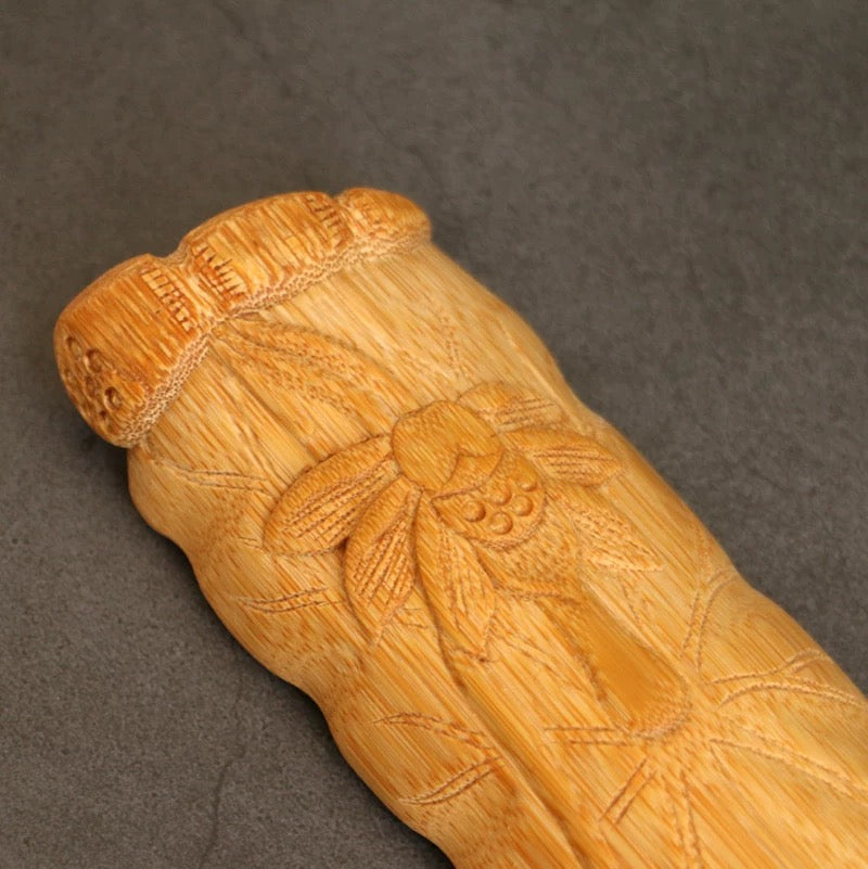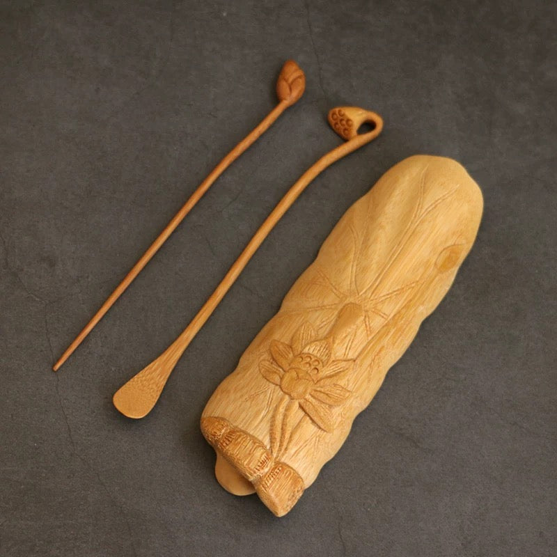 Premium Carved Bamboo Tea Tools – 3-Piece Lotus Leaf Set with Tea Scoop & Picker
