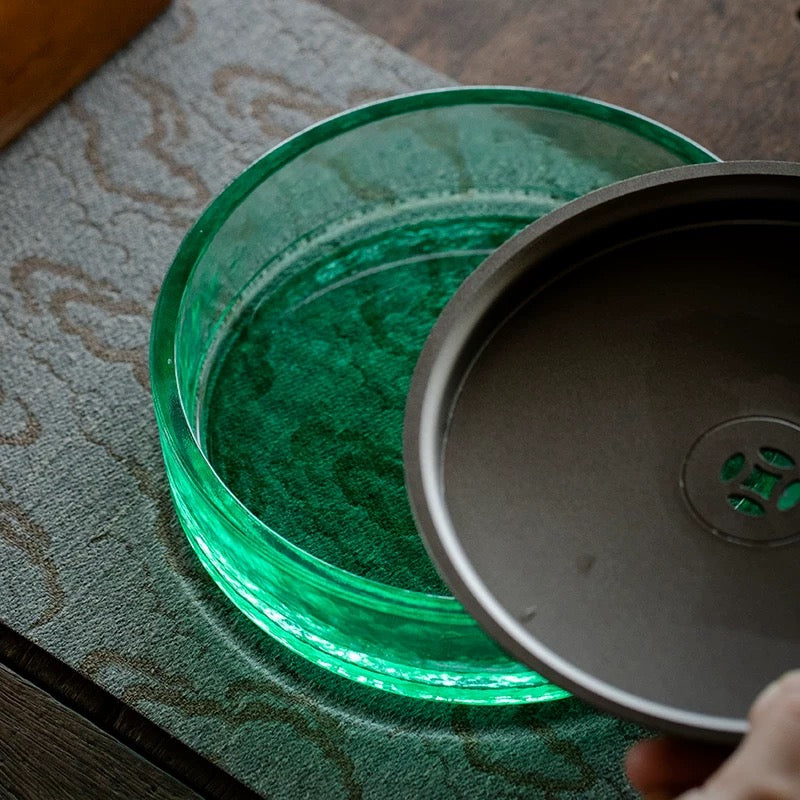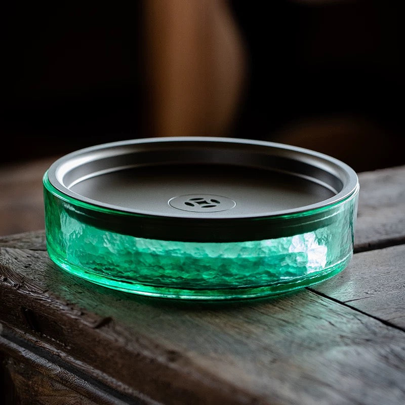 Vintage Glass Tea Waste Water Jar - Large Covered Wastewater Container for Tea Ceremony (Multi-Functional as Brush Rinse & Cup Cleaner)
